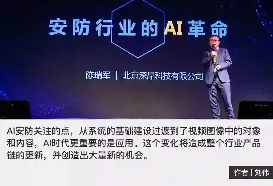 陈瑞军在演讲中表示,安防行业在数字时代几经迭代,但其本质没有变化,还是围绕数据采集、传输和存储这一基础架构展开。这一点在AI时代同样没有改变,改变的是AI安防关注的点,从系统基础建设过渡到了视频图像中的对象和内容。而AI时代更重要的是应用,这个变化将造成整个行业产品链的更新,并创造出大量新的机会。