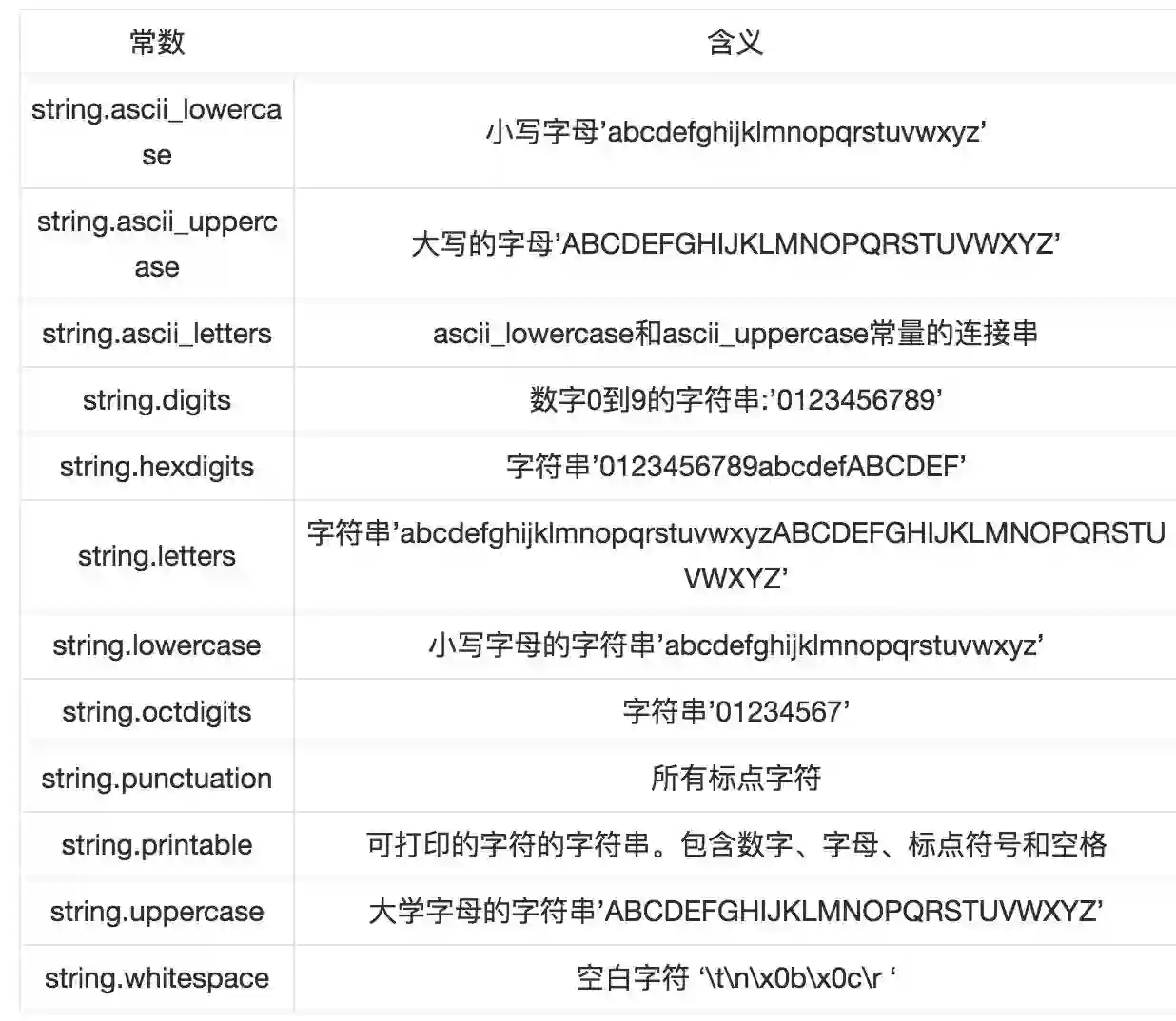 String模块包含大量实用常量和类,以及一些过时的遗留功能,并还可用作字符串操作。