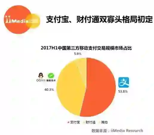 2017年上半年支付宝和理财通(微信支付+QQ钱包)的市场份额分别为53.8%和40.3%,已经形成了双寡头垄断的支付市场格局。腾讯已经展现出后来居上的势头。