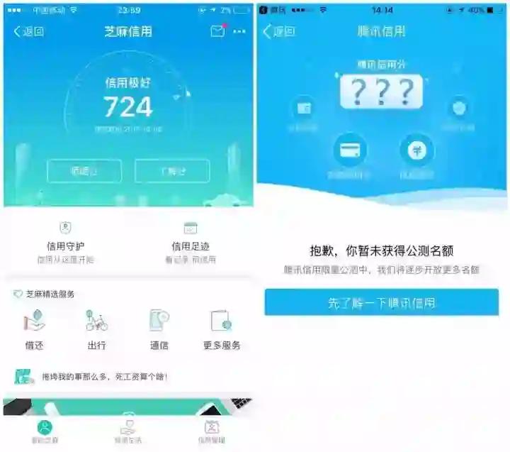 相比芝麻信用,腾讯信用这两年动作有点慢,还处在公测阶段。
