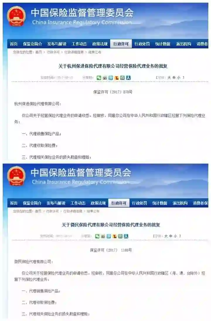 近期,由腾讯持股57.8%的微民保险代理有限公司正式获得保监会批准,引发业内关注。今年7月,蚂蚁金服旗下的杭州保进保险代理有限公司也拿到了保险牌照。