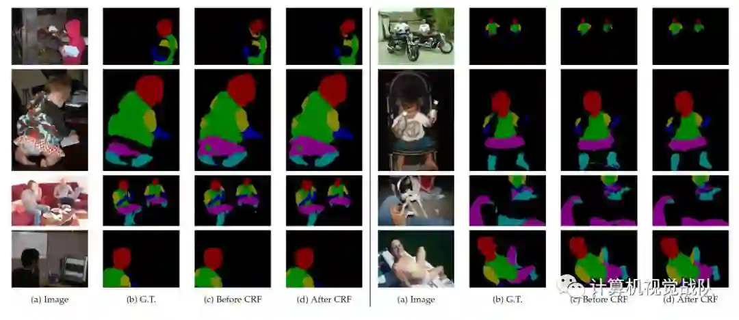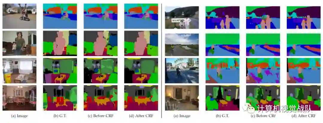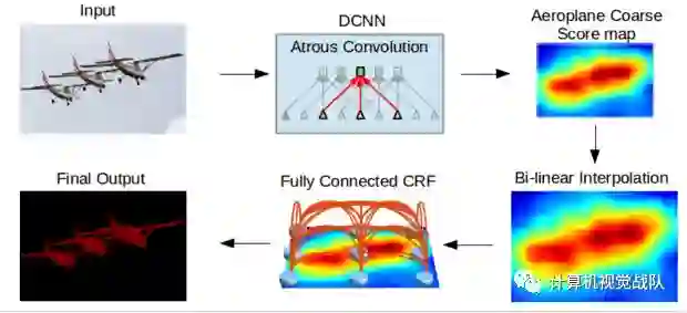 使用atrous卷积层提高特征分辨率,这样可以每8个像素计算一个特征响应,之后双向性插值上采样8倍到原始图像分辨率,输入到CRF精修分割结果。