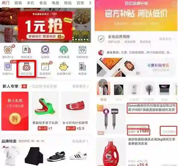 促销补贴:通常来说只要低于市场价格出售都可以看成是一种补贴,例如“新人专属的1元购”和“百亿补贴”活动。
