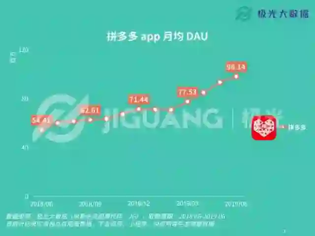 [8] 拼多多App月均DAU, 极光大数据