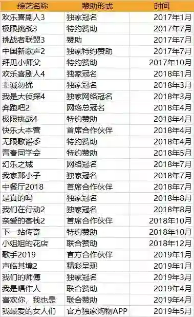 品牌活动:对网络综艺节目和网络电视剧的赞助,以及电视广告投放等;
