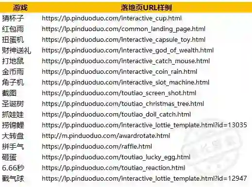 (互动游戏类广告落地页URL样例;数据来源:ADBUG)