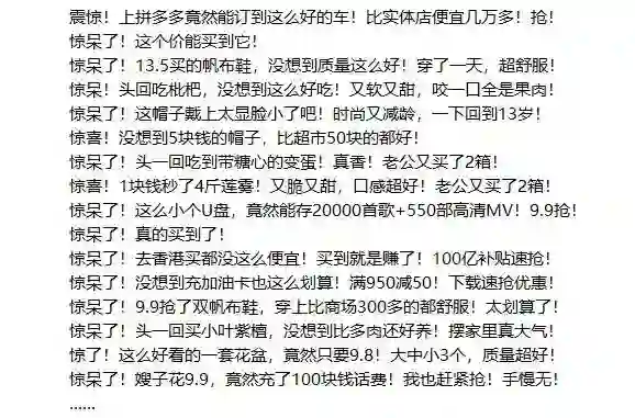 但随着目标用户的升迁,裂变活动势必会越来越难做(用户可能更顾及"面子"),且用户对补贴变得不那么敏感。此时,可能只有大额度真金白银的补贴才能让用户意识到:这个平台好像是真的便宜,来都来了,买一件试试呗。