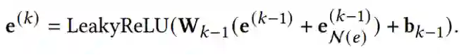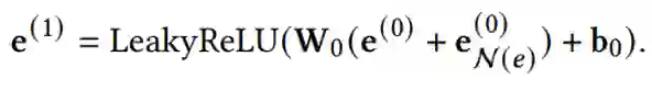 并相应得到了节点 𝑒 通过将其邻点的表示聚合为自己的one-hop表示公式以及multi-hop表示公式,如下: