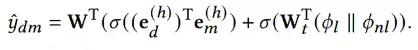 KGNN和TextCF分别学习了数据集和方法在结构和描述特征方面的嵌入表示。我们让模型分别学习和优化这两种表示,然后结合它们预测的概率,生成最终的交互概率,如下所示: