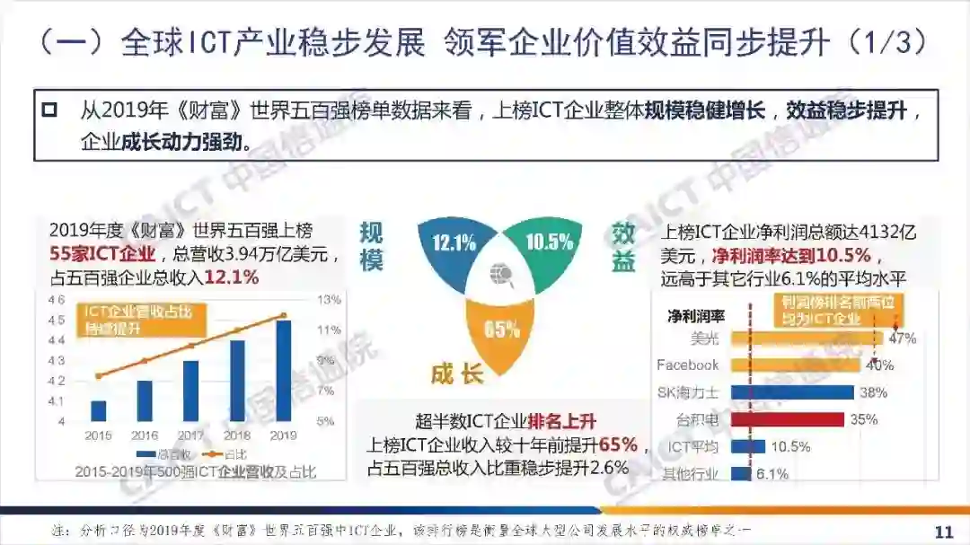 报告重点分析了影响信息通信产业未来发展格局的重大形势变量,对当前全球信息技术演进趋势、产业发展态势进行了综合研判;并基于ICT上市企业运行数据分析了我国产业发展的主要特征、面临的机遇和挑战,提出新形势下加快构建更高层次、更加开放信息通信产业体系的若干建议。