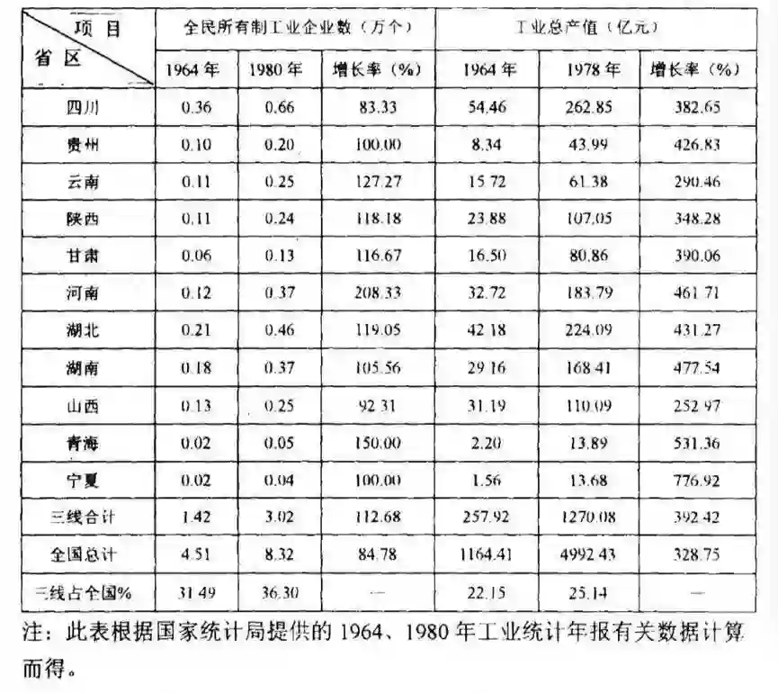 所谓三线建设,是按我国地理区域划分的,沿海地区为一线,中部地区为二线,西南和西北地区为三线。总的来说,彼时工厂大多集中于大城市和沿海地区,要把他们统统搬到靠山、隐蔽的三线去。在当时的领导人看来,加强后方建设可以增强战备力量,即使敌人不进来,也可以当作建设内地的长远考虑。