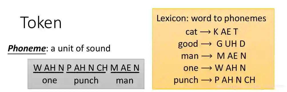 与传统的文字处理不同,一般的文字处理都以词表中的词为token,而声学中有四种主流的token形式