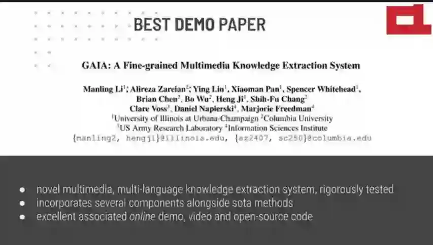 最佳DEMO论文:《GAIA: A Fine-grained Multimedia Knowledge Extraction System》(GAIA: 细粒度多媒体知识提取系统)