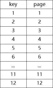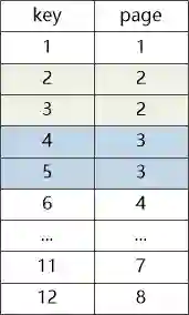 说到这里,大使不知道从哪里变出一块小黑板,在上面画了图2,然后说:“比如说我现在有一堆数据,每条记录占一个数据页,他们的key和page之间的关系是这样的 ”
