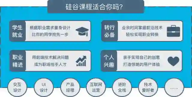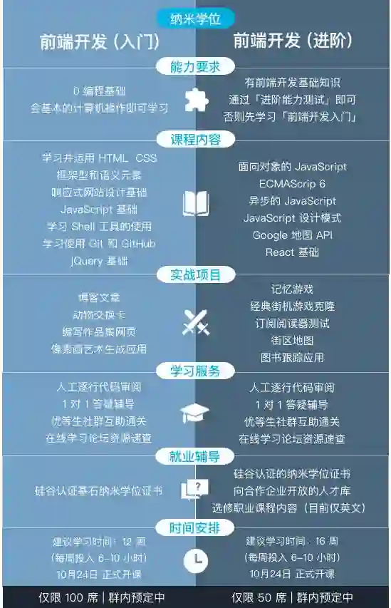 新一期课程将于 10月24日 正式开课,本期中国区仅开放 150 个席位,并限时免费开放了硅谷教室,可以免费体验前端课程,提前预定席位!