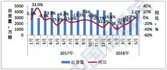 6月11日消息,来自中国信息通信研究院发布的《2018年5月国内手机市场运行分析报告》显示:2018年5月,我国国内手机结束连续14个月的单月出货量同比下降态势,呈现小幅增长。2018年5月,国内手机市场出货量3783.6万部,同比增长1.2%。2018年1-5月,国内手机市场出货量1.59亿部,同比下降19.0%。