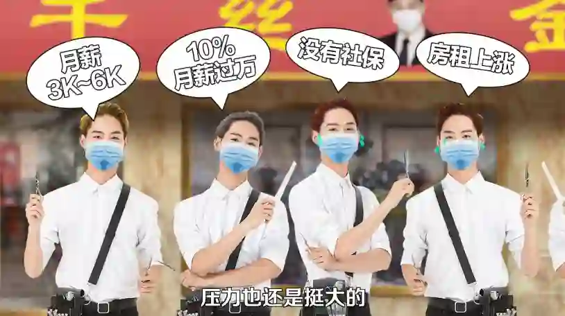 数据统计显示,全国各地的理发师的平均月工资处于3000-6000元的范围之内,只有10%出头的理发师月收入能达到万元以上,并且很多是没有社保的,面对房租和生活成本的上涨,压力也很大。