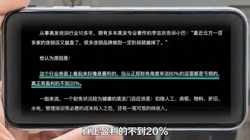 甚至有数据显示,80%的理发店都是亏损的,真正盈利的不到20%。