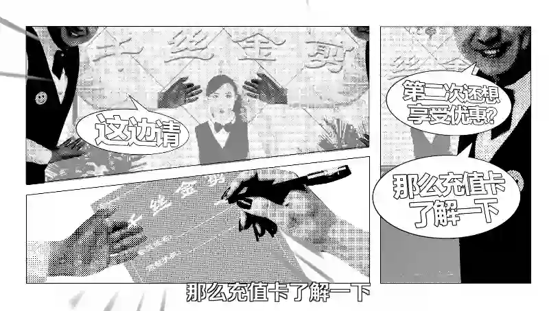 如果你有在点评软件上搜索过理发店,就会发现上面有不少29.9、39.9元的洗剪吹套餐,但这难得一见的羊毛一般只能让你薅一次。付钱的时候,洗头小弟和理发师会像保镖一样护送你到前台并登记你的姓名手机号。第二次还想享受优惠?那么充值卡了解一下。