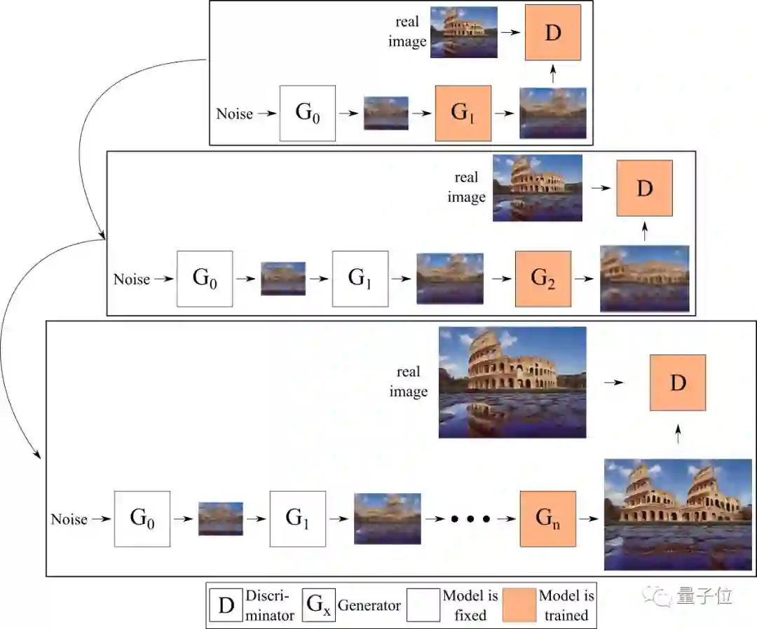 所有的生成器都是单独训练的,这意味着在训练当前生成器时,所有以前的生成器的权重都保持不变。