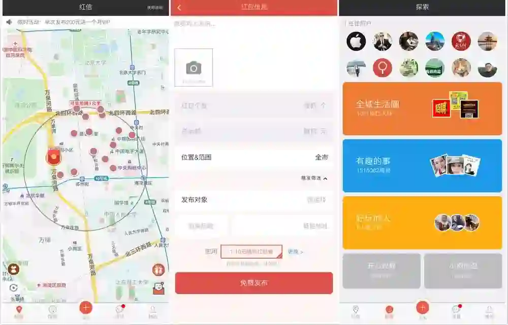 去年12月公测以来,“红信”已有注册用户30多万,日活用户6万,已在35个城市设立城市合伙人。发过红包的用户占60%,峰值平台每日共发放2万元红包。