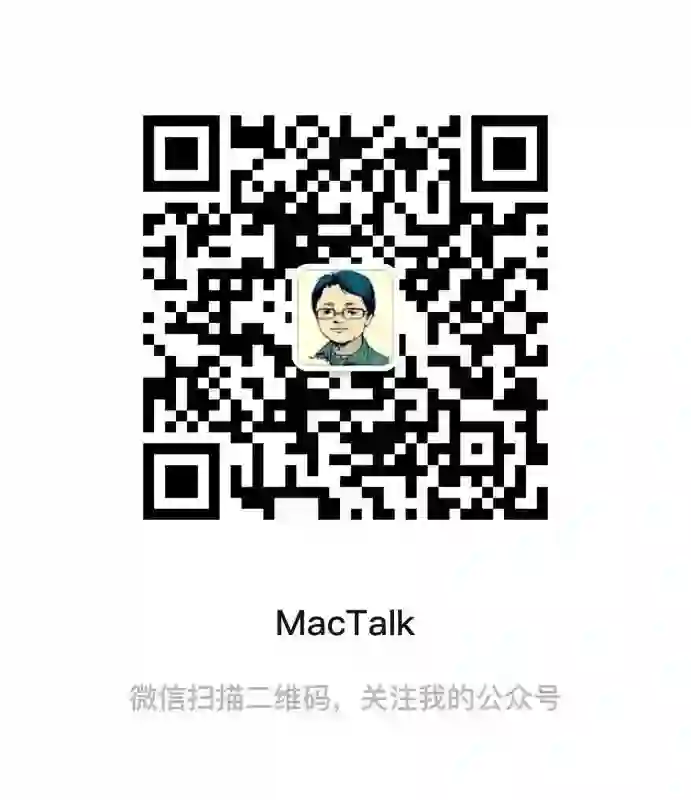 今天文末推荐极客邦科技总裁池建强老师的微信公众号 MacTalk。MacTalk 开通于 2012 年末,内容起于 Mac 而不止 Mac,内容覆盖了技术、创业、产品和人文思考,文风有趣,又有一点力量。