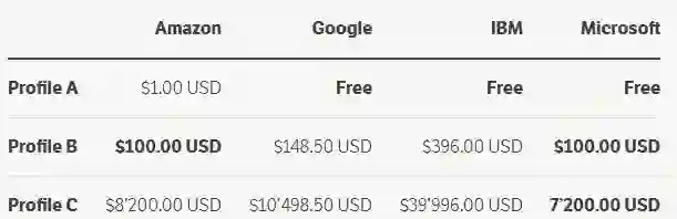 然而,对于 IBM,在你的免费层使用量用完之后,你就要为每次调用 API 支付相同的价格。