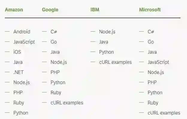 因为我最熟悉 PHP,所以我决定在这次测试中坚持使用 PHP。我想指出每个供应商提供了什么样的 SDK(截至今天):