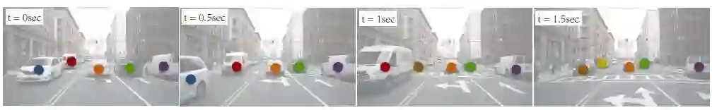 该研究提出了一个基于点的联合检测与跟踪框架——CenterTrack。每一个目标都用其边界框中心的一个点来表示,然后按时间顺序跟踪这个中心点(图 1)。
