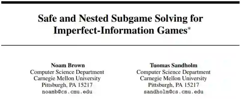 论文:Safe and Nested Subgame Solving for Imperfect-Information Games