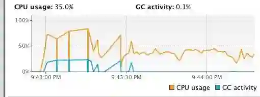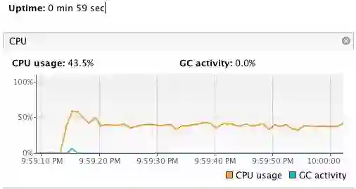 跑了一分钟,发现 CPU 的使用率一直都比较平稳而且不高。