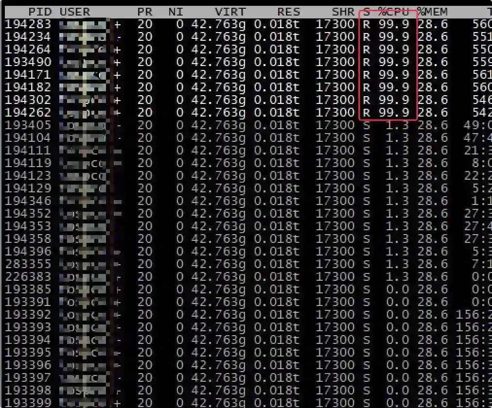 跑了一段时间发现 CPU 使用率确实很高: