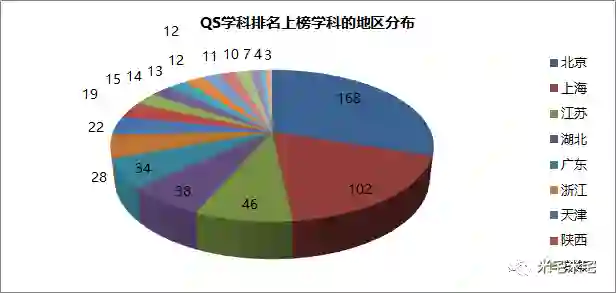 QS学科排名上榜学科的地区分布图▼