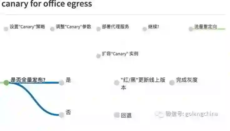 然后开始,我们是部署在服务器。然后把这个 Canary 实例做扩展,在流量进来之前,实例的容量一定要跟着上线。进来之后把流量做重新定向,把流量原来直接打给后端的 Pod,打到代理服务器。整个过程不断的迭代,有 1% 的线上用户,最后 2%,10%、50%、100%,最后就是全量用户。