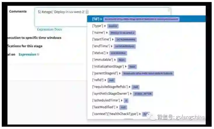 Pipeline 表达式很厉害,它的表达式是用 Grovvy 来做,大家知道 Grovvy 是一个动态语言。凡是 Grovvy 能用的语法,在字符串的地方都可以用。所以,这些步骤中,可以说这个步骤参数是来自表达式。也可以说有条件的执行,生成环境的时候才做这样的东西。也可以有前置条件,当满足这个条件的时候,这个流程和 stage 可以继续走下去。