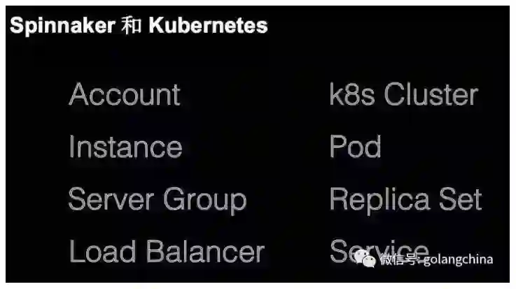在 Spinnaker 里 Instance 对应到 Kubernetes 里 Pod,一个 Pod 就是一个运行的单元,它有 Server Group,这个 Server Group 对应的是 Replica Set 或者是 Deepionment。然后 Load Balance,在 Spinnaker 里称之为 Load Balance 的东西在 Kubernetes 里就是 Service。