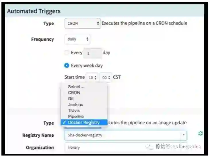 如图 10 是各种类型的表达式,从现在看起来,基本上各种要求都能满足了。Pipeline 可以自动触发(图 11),可以说每天、每周、每年、每月,某一天的时候要执行 Pipeline,做一个自动发布等等,也可以用今天新生成一个镜像的时候,Pipeline 去做发布。