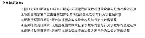 我们看第一点,假如我们以构造训练集越多越好的原则去构造,那么变长窗口当然是1-2,1-3,1-4,一直到1-23,但是这样会出现一个问题,也就是线上和线下的窗口间隔不一致,这样会导致线上和线下构造的特征数据分布不一致,很容易出现过拟合现象。因此我们从后往前推,使得线上线下得窗口间隔一致,还是以构造训练集最多原则构造窗口,那么这样构造就是1-30,1-23,1-16,1-9,1-2(为什么间隔是7呢,因为这7天是用来构造label的,也就是线上和线下最小的间隔)。