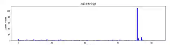 从图四我们可以看出,每天的注册人数也是符合图一的规律,但是到了第24天,注册量出奇的高。于是我们单独拿出这一天注册日志的数据,分析发现,这些注册用户的设备类型和注册类型一模一样,于是我们就画出了如图五这样的图。