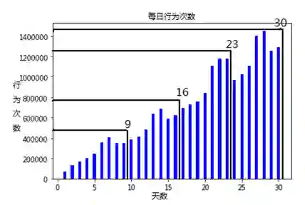 第二个原则,我们是根据图二得出的规律,也就是窗口还需要满足数据分布的周期性,可以看出,每个窗口每天的行为次数都是周期性的增长,除了1-2这个窗口之外。因此1-2这个窗口就被去掉了,并且1-2这个数据窗口太小,信息量太小,显然也就舍去了。