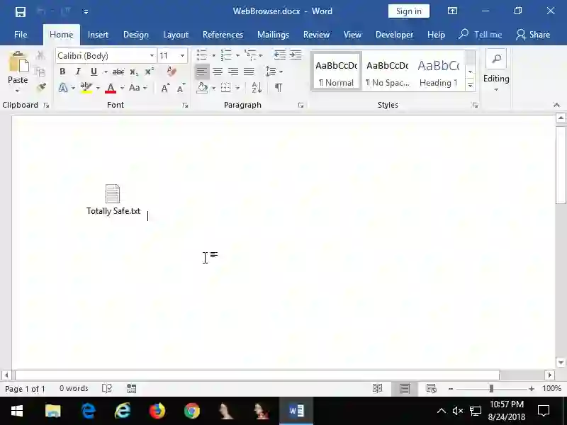 当Shell.Explorer.1充当嵌入式Internet Explorer时,事情会变得更有意思。除了可以在文档中嵌入Web浏览器之外,它还允许浏览本地计算机上的文件,以及浏览到远程位置(共享和网站)上的文件。没有一些用户交互,这是不可能完成的。单击激活也适用于此模式,单击该对象将触发Internet Explorer的文件下载功能,这意味着将向用户显示“文件下载”对话框。如果用户单击“ 运行”或“ 打开”(取决于文件格式),则将执行该文件。