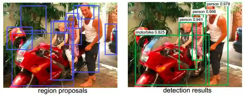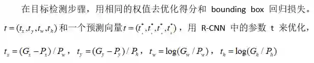 检测网络也有两个相似的输出层。不同的是,对于每个候选框,其有(N+1)个输出得分和(4*N)个bounding box回归补偿(其中N是目标类别数目,+1是背景)。