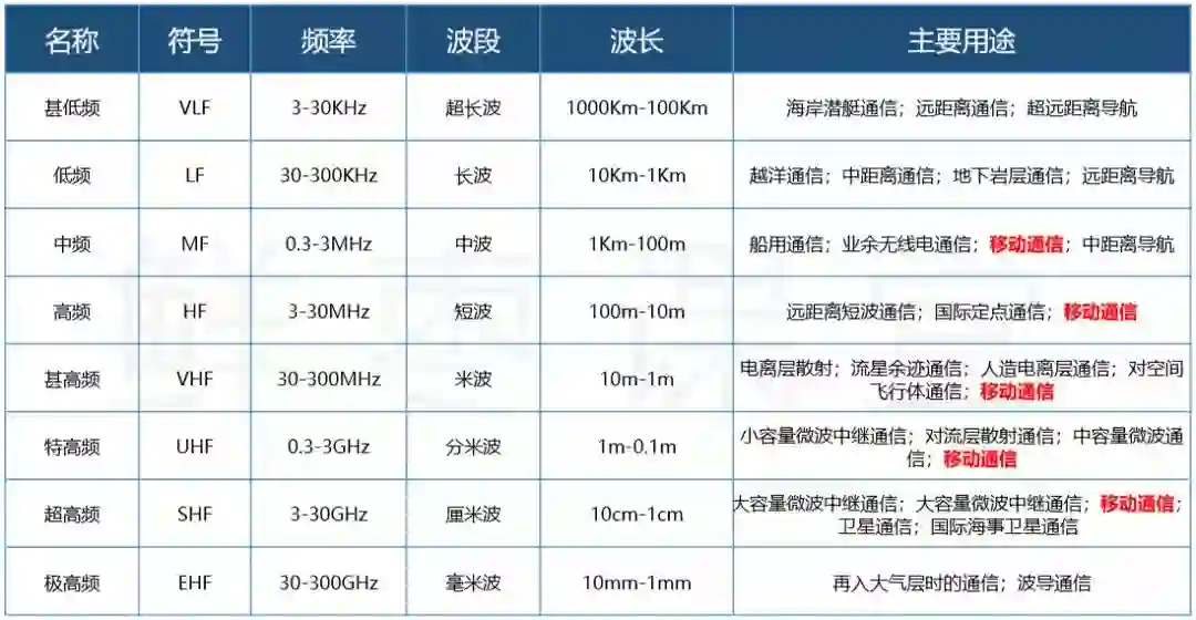 请大家注意上面图中的红色字体。一直以来,我们主要是用中频~超高频进行手机通信的。
