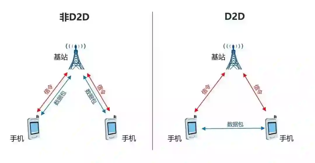 5G时代,同一基站下的两个用户,如果互相进行通信,他们的数据将不再通过基站转发,而是直接手机到手机。