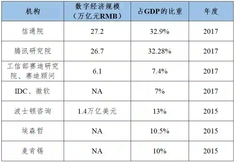 波士顿咨询、埃森哲和麦肯锡三家咨询公司对2015年我国数字经济的规模做过研究,占GDP的比例分别为13%、10.5%和10%,结果相近。