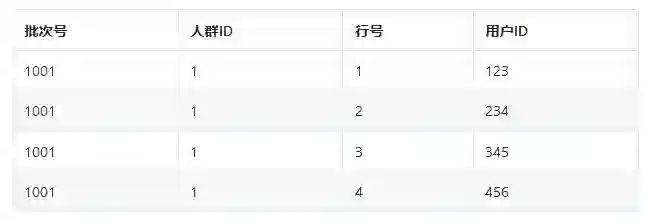 批次号:人群每导出一次,就新加一个批次号,批次号为时间戳,递增。