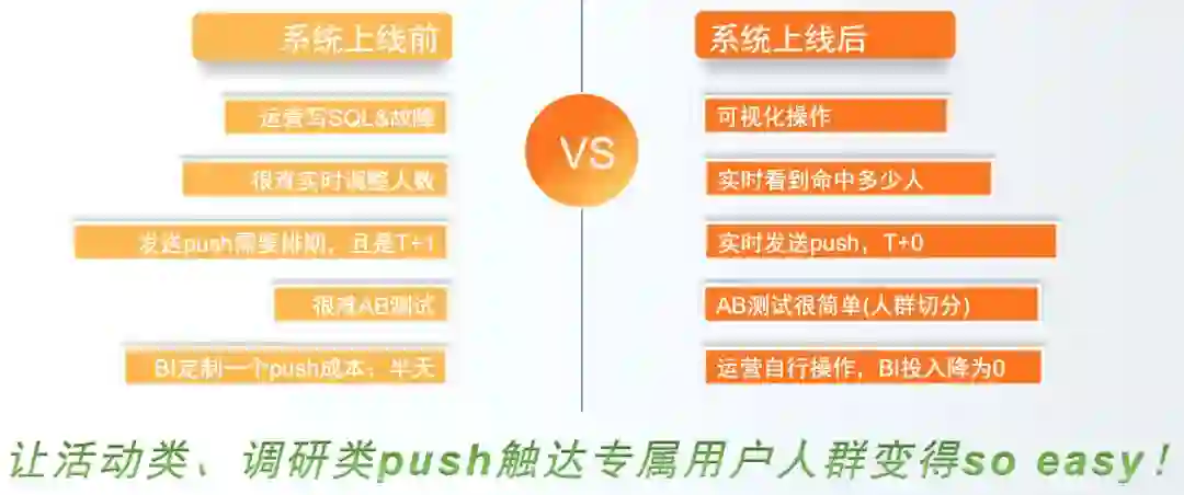 本次我们把人群圈选系统与原有的 PUSH 系统打通,极大地改善了此类 PUSH 的准备数据以及发送的效率,解放了开发资源。
