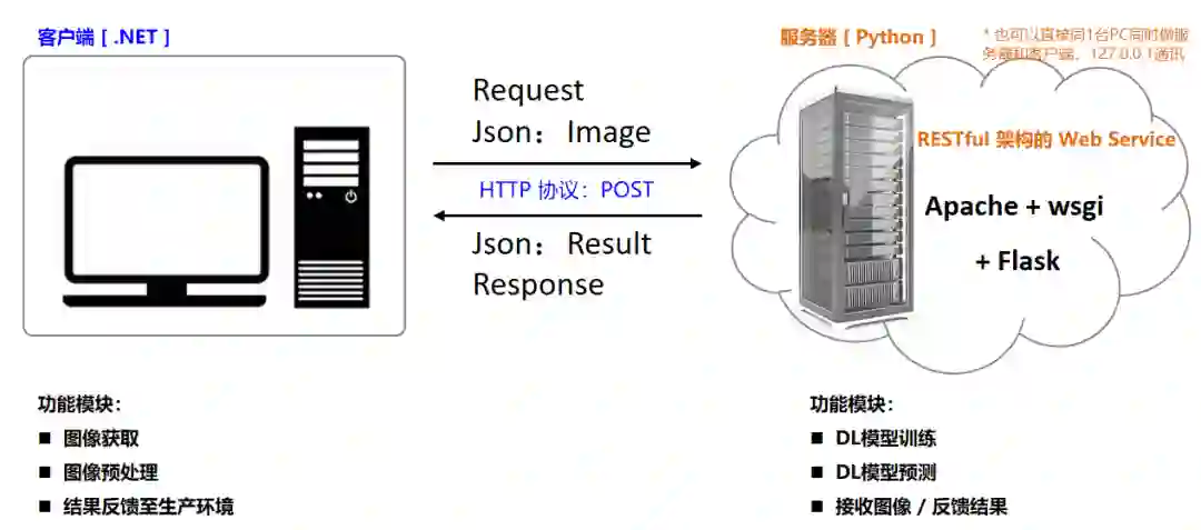 通过 post 通讯,Python上训练和部署,并通过 Flask 服务和原程序通讯交互;