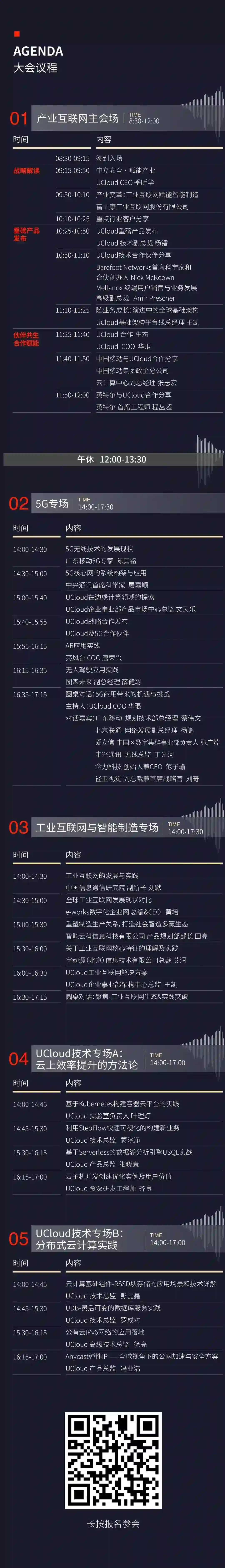 本次大会以产业互联网为重点,在分享UCloud及生态伙伴推动行业数字化转型同时,也聚焦前沿技术带来的行业变革。大会围绕行业热点特设5G专场与工业互联网&智能制造专场。